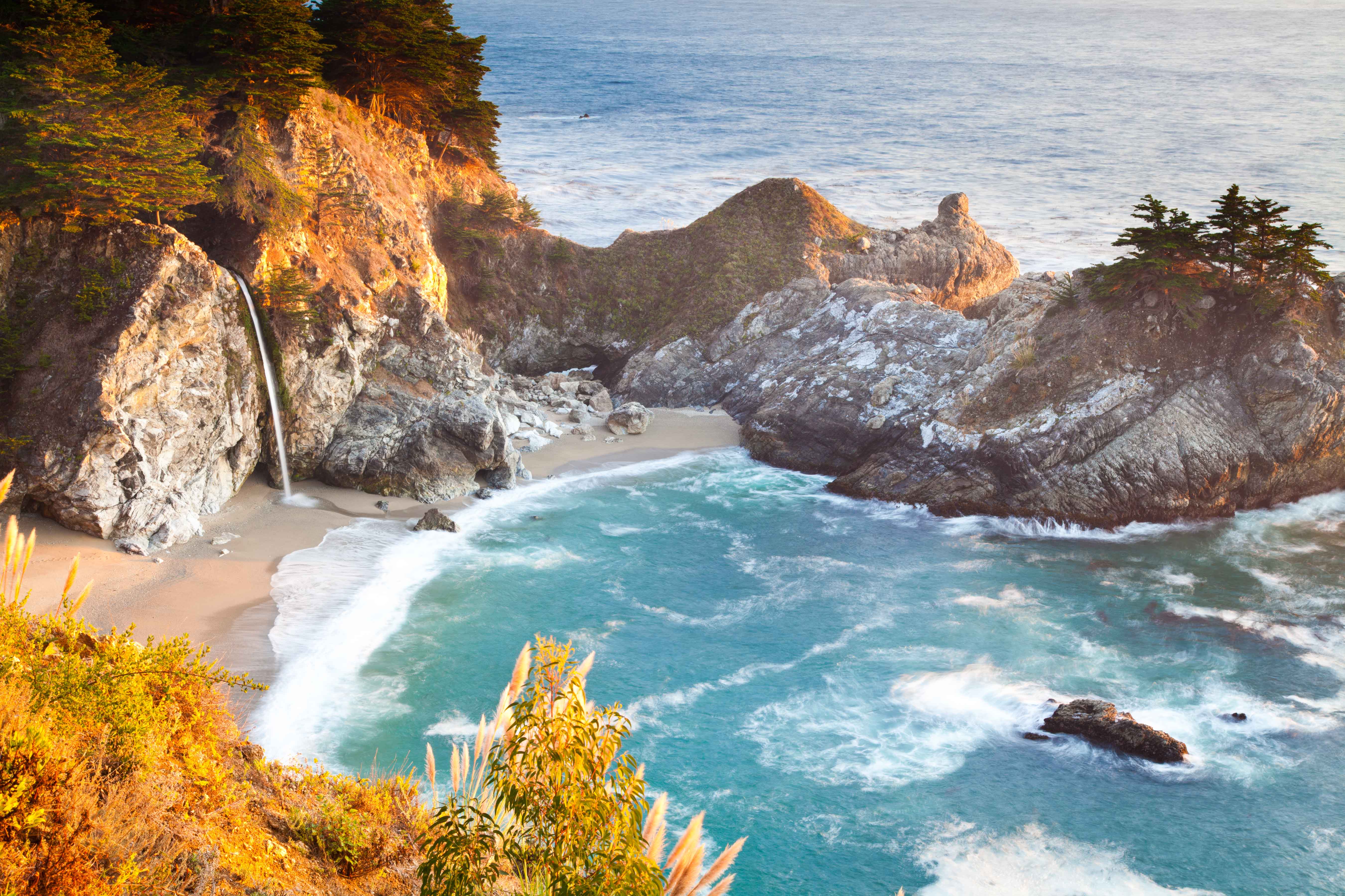 A sweeping panorama of Crater Lake in Oregon, the photograph showcases its remarkable deep blue color and surrounding forest. The expansive view is enhanced by a wide format suitable for large wall spaces such as hallways or dining areas, where it can serve as an immersive visual experience.
